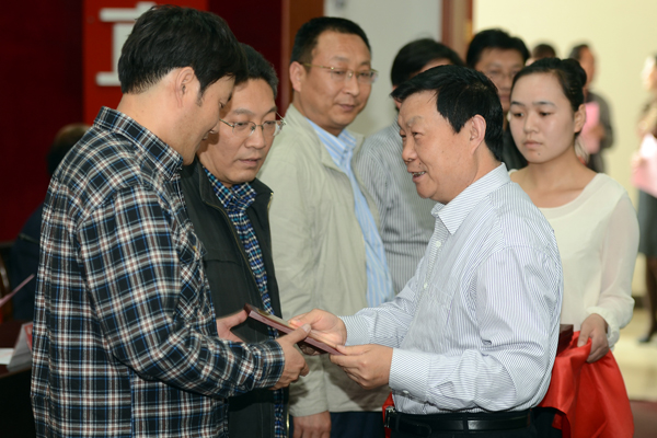 在热烈的掌声中,校党委书记张继良为生物医药工程系、城乡发展与管理工程系颁发考研工作先进集体奖,院长张景书为艺术系等5个系颁发考研进步奖,党委副书记左晓民、副院长刘建林分别为10个系的获奖学生代表颁奖。