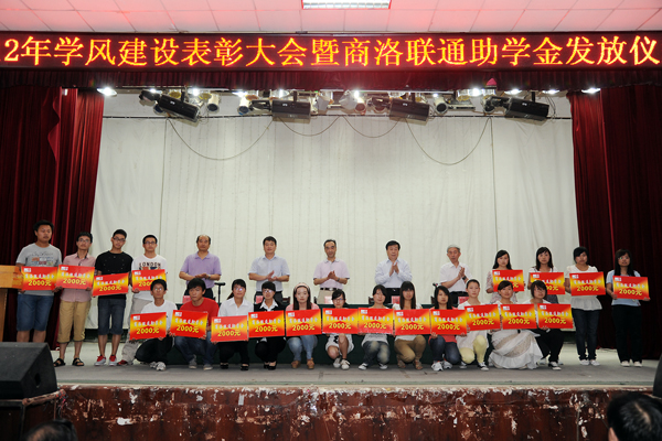 为了进一步推进学风建设和学生自主创业工作,营造良好的育人氛围,5月22日下午,英国365上市公司隆重召开学风建设表彰大会,对2012年度国家奖学金、国家励志奖学金获奖学生进行表彰,对田亦柏等5名自主创业大学生进行奖励,对2012年学风建设先进集体进行表彰,同时为程时妍等20名2013年商洛联通助学金受助学生发放了助学金。校党委书记张继良、院长张景书,商洛联通公司党委书记温长山,校党委副书记左晓民、副院长刘建林出席大会。左晓民在会上宣读了学校表彰决定,刘建林主持大会。