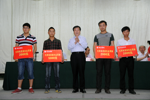 在热烈的掌声中,张继良、张景书、温长山、左晓民、刘建林等领导和嘉宾为获得国家奖学金、国家励志奖学金的学生代表,自主创业大学生代表和学风建设先进集体代表颁发了荣誉证书,为联通助学金受助学生发放了助学金。