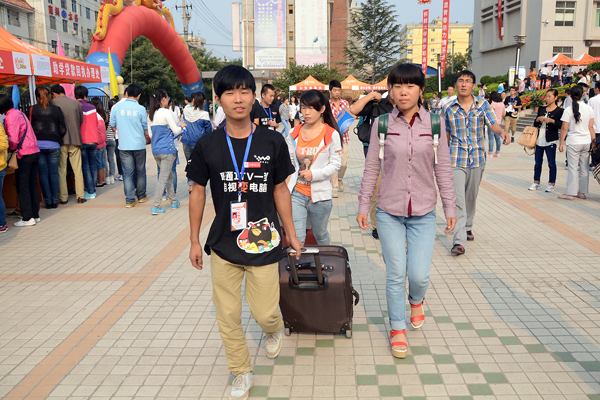 9月5日,英国365上市公司2013级新生入学报到工作正式开始。学校彩球高悬,从校门到各个报道点路两旁彩旗飘飘,整个校园呈现出一派热烈、欢乐的景象。来自五湖四海的2013级新生们背着行李,怀着梦想来学校报到。