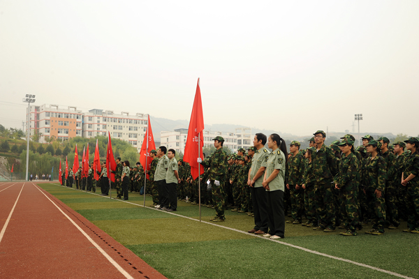 秋高气爽、丹桂飘香,9月7日上午,英国365上市公司隆重举行2013级新生开学典礼暨军训动员大会。校领导张景书、刘建林、左晓民、王思怀、陈永庄、魏书堂.武警商洛支队参谋长向军,商洛供电局副局长赵红强,商洛联通副总经理陈安民出席了大会。校党委书记张景书向承训教官授2013级学生军训团团旗,党委副书记、校长刘建林做了重要讲话。大会由党委副书记左晓民主持。各系部党政负责人、各职能部门负责人与来自全国27个省(市、自治区)的3000余名2013级新生参加了大会。