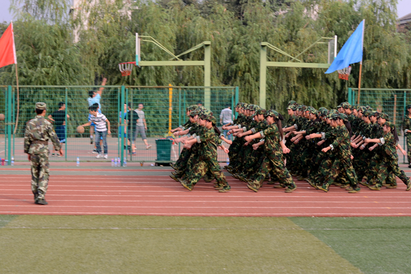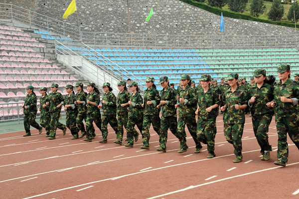 9月12日,2013级新生军训已进入第6天。来自全国24个省(市、自治区)的3000余名学生编成6个营36个连,正在热火朝天地进行军事训练。凉爽多云的天气为同学们的训练提供了不少便利,绿茵茵的青草和橄榄绿的迷彩军装相互辉映,让同学们显得活力十足。军官们严格要求新生整理军容、端正军姿,不时亲自示范,手把手纠正基本动作。同学们在教官的带领下认真训练,丝毫没有懈怠,已完成了军姿、整理着装、稍息、立正、齐步、正步等训练科目。