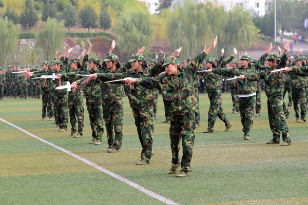 2013级学生军训自9月7日开始,为期12天。完成了队列队形训练、整理内务训练等规定内容,并于9月16日进行了15公里行军训练。按照学校安排,军训结束后,2013级新生将开始军事理论学习,接受国防知识教育。