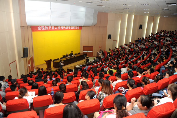 报告中,刘占良介绍了自己参加全国教书育人楷模高端培训会并受到国家领导人接见的经过,传达了刘延东副总理对全国教师的殷切希望,与师生们分享了他个人在教育教学过程中的感悟。