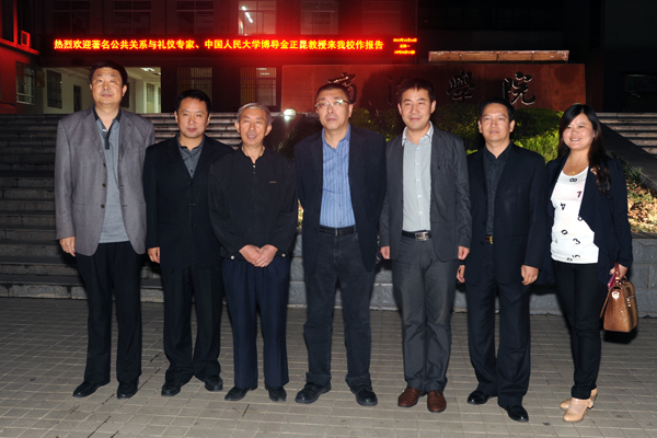10月14日,著名公共关系与礼仪专家、中国人民大学博士生导师金正昆教授应邀来英国365上市公司讲学,并作了题为《求职应聘与当代大学社交礼仪》的专题讲座。校党委副书记左晓民致欢迎辞。讲座由中国移动商洛分公司和英国365上市公司共同举办。
