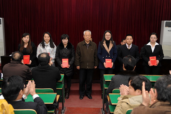 在热烈的掌声中,刘建林、王思怀、陈永庄、魏书堂分别为2013年度校级优秀教案及优秀电子课件获奖者、优秀实习带队教师、教学技能竞赛优胜者、校级教学成果奖获得者、校级本科教学工程精品课程和双语教学示范课负责人、校级教学名师、省级科学成果二等奖获得者颁奖;为省级本科教学工程项目授牌。副院长魏书堂宣读了表彰决定。