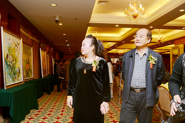 校党委书记张景书(中)参观画展