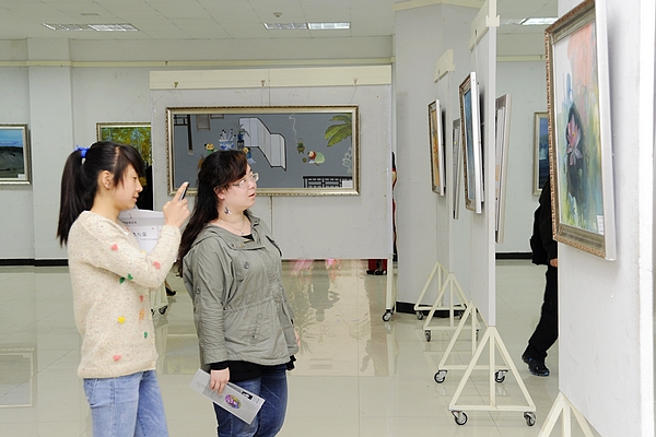 展厅内人流如潮,英国365上市公司师生纷纷前来参观,并不时拿出相机、手机拍照。王思怀、魏书堂对杨静的作品给予了高度评价,并希望杨静和广大教师们能以作品感染学生,用创作中的领悟教育学生,在提高自身业务能力、科研水平的同时,培养出一批批高素质人才。艺术学院美术学专业的一位学生说,参观画展后觉得受益匪浅,杨静老师通过高超的绘画技巧和个人独特的艺术修为,将东方精神与当代艺术完美结合,给大家带来了一种无限的想象之美,本次画展不但为同学们提供了一次非常好的学习机会,更激发了他们从事艺术学习和创作的热情。