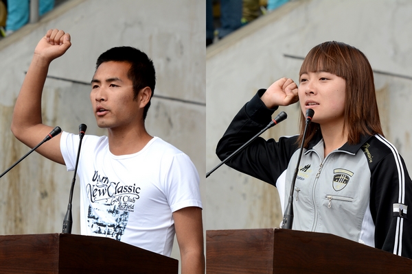 运动员代表刘晓莹、裁判员代表洪福祥,分别代表全体运动员、裁判员宣誓。