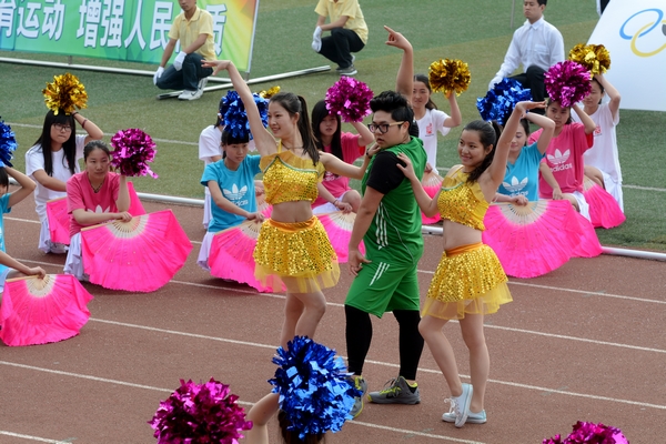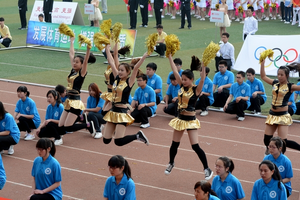 开幕式上,城乡规划与建筑工程学院的300名同学以饱满的热情表演了大型团体操《舞动青春,放飞梦想》,拉开了本次大型文体表演的序幕;人文社会科学学院的太极拳表演《太极神韵》刚柔相济,典雅大方;经济与管理学院240名青春学子带来的啦啦操《青春旋风》热情奔放,活力十足,为整场表演画上了圆满的句号。