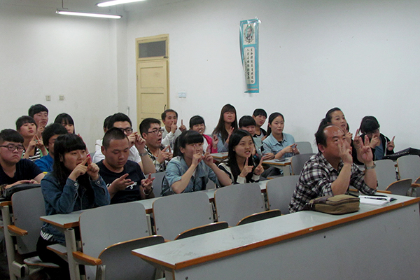 27日,200余名2013级学生参与了由心理学师生指导的团体心理辅导活动。活动以班为单位进行组织,分为七个环节:“爱的鼓励”环节为学生营造了活跃的团体气氛,“抓手指”打消了同学们的防卫心理,“一元五角”环节通过男女生分组激活了团体气氛,“爱在指间”使学生体验了人际交往中接纳、肯定和支持的重要性,“各行其是”引发了学生对人际交流方式的思考,“解开千千结”旨在引导学生感悟“不管事情多么复杂,总有解决问题的办法”,“齐眉棍”作为最后一个环节更使学生体验了同心协力的价值。活动结束时,一位班长说:“很感谢这次团体活动,它增进了我们班内同学之间的了解,增强了班级的凝聚力”;班内某同学认为,这次活动让自己感受到了主动交往的重要性,并表示今后自己将会以更加积极的交往态度参与活动。