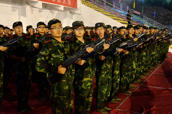 2014级新生军训已接近尾声,在最后的几天里,同学们主要训练了军体拳、花样队列、持枪操练等项目。虽然在训练间隙还伴有秋雨,但同学们的热情依然高涨,训练十分认真,丝毫没有松懈。