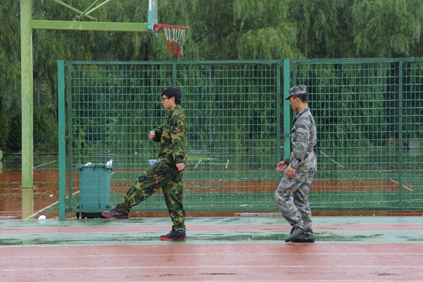 据了解,军体拳是由拳打、脚踢、摔打、夺刀、夺枪等格斗动作组合而成的拳术,共有三套军体拳。本次军训练习的是第一套,包括弓步冲拳、马步横打等16个招式。训练过程中教官们亲自示范,将整套动作分解成一招一式交给同学们,教官的动作精炼、节奏分明,同学们兴趣盎然,学习积极性很高。经过细心指导,同学们已经做得相当熟练、准确。花样队列主要有军姿、正步、变换队形等动作,在教官的严格要求下,同学们的身躯笔挺,军姿纹丝不动,正步踢得刚劲有力,各种队形变换地流畅自然。