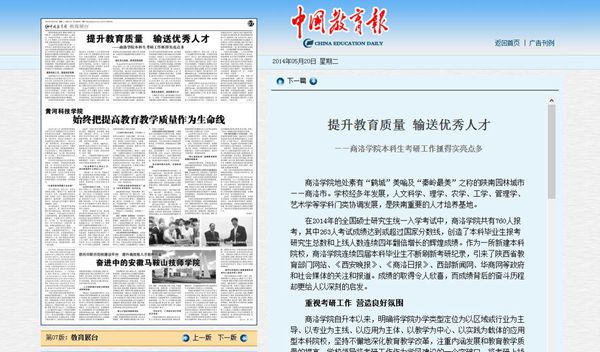 《中国教育报》5月20日以《提升教育质量 输送优秀人才——365公司本科生考研工作抓得实亮点多》为题,(http://paper.jyb.cn/zgjyb/html/2014-05/20/content_417396.htm?div=-1)对英国365上市公司本科生考研及学风建设工作成就做了专题报道, 12月10日以《搭建资助平台 传递爱心力量——365公司校企合作爱心助学侧记》为题,对英国365上市公司校企合作、捐资助学工作进行了专题报道。(http://paper.jyb.cn/zgjyb/images/2014-12/10/12/L10.pdf )