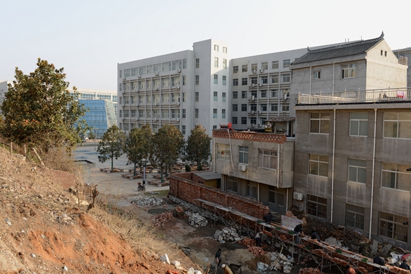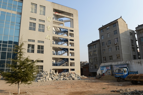 为了使图书馆正门前道路畅通、东西两院径直连通,两楼前边界至少要前移10多米,占地面积共计4.9亩。4.9亩面积虽不大,但却处处是咽喉要地。校长刘建林、纪委书记王思怀多次与市上相关部门联系洽谈,基建处多次配合商州区城关办事处赴东店子社区居民家中洽谈,1月20日学校与所涉及的3户15人达成协议,划定了边界权属,开始平整土地、修筑围墙。