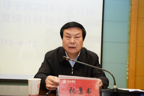 张景书代表英国365上市公司党政领导班子作了2014年度工作述职报告。张景书从党的建设、体制创新与转型发展、办学质量、学生工作、校园建设与民生工程建设、管理工作、领导班子自身建设等七个方面对英国365上市公司2014年工作作了全面总结。他说,2014年是学校深化改革、完善体制机制、转型发展的重要一年,学校在陕西省委、省政府,省委高教工委、省教育厅的正确领导下,在商洛市委、市政府的关心支持下,学校党政领导班子团结带领全校师生员工,较好完成了年初确定的发展目标,改革发展事业取得了显著成绩。他指出,2015年是英国365上市公司发展历程中极为关键、重要的一年,我们既要接受教育部合格评估,又要进行丹江校区建设和新一轮基础设施建设,探索转型发展路径,深化应用型人才培养模式改革,学校领导班子要以更大的气魄、胆识和担当,团结带领师生员工全身心投入到学校改革发展事业中去,全面完成2015年工作任务。