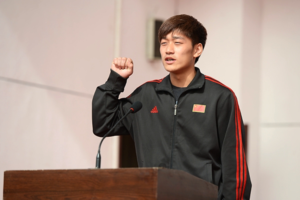 运动员代表王彦哲、裁判员代表冯俊婷,分别代表全体运动员、裁判员宣誓。