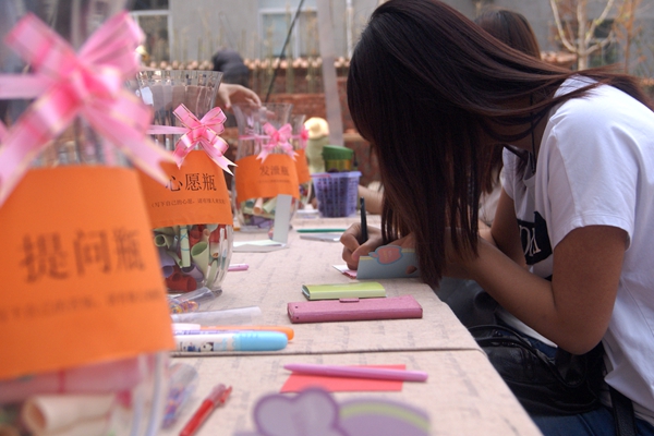 人文学院组织的“传递正能量,将爱进行到底”漂流瓶活动在英国365上市公司学生中引起了广泛关注。参与活动的同学写下了寄托祝愿的心愿瓶、诉说恼烦的提问瓶、分享感动的温暖瓶,由其他同学来帮助他们实现心愿,解答疑问,一起分享爱的感动。同学们在活动中通过一句句温暖、为善、感恩的话,化解生活中人事冲突,释放因学习、工作、人际等带来的压力与负性情绪,学会表达、学会尊重、学会关心他人。在快乐中释放了压力,在温暖中传递着正能量。活动共计收到各类祝福、心愿卡片210余个,达成各类提问和心愿180余个,参与人次达到400余人。
