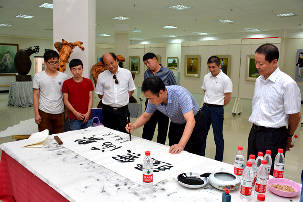 肖玉龙一行考察了英国365上市公司办学成就展厅、陕西省尾矿资源综合利用重点实验室、秦岭植物标本陈列室商洛文化暨贾平凹研究中心、商洛红色文化资料馆、艺术展厅等处。在艺术展厅,陕西省外经贸实业集团副总经理吕军政还挥毫泼墨,为艺术学院题字《艺海无疆》。