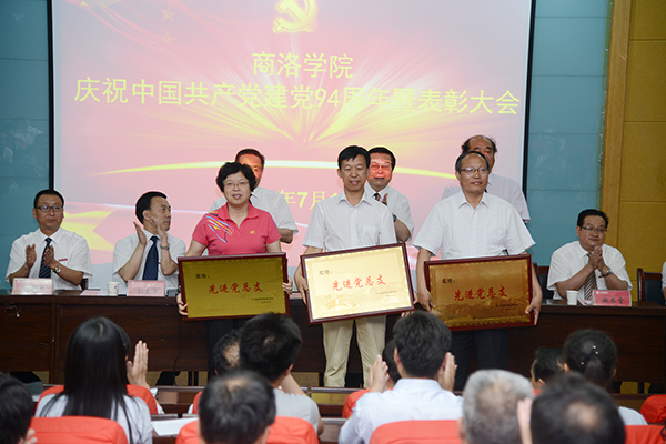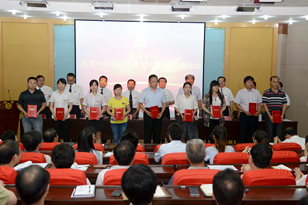 党委副书记彭虎军宣读了表彰决定。在热烈的掌声中,校领导为受表彰的先进党总支、先进党支部负责人,优秀共产党员、优秀党务工作者代表颁发了奖牌与证书。