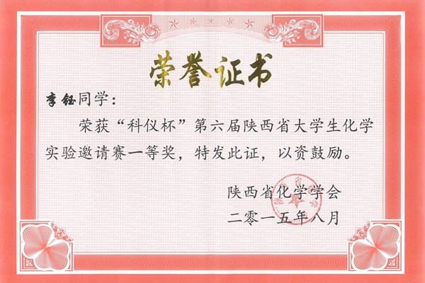 8月20至22日,由陕西省化学会主办,宝鸡文理学院承办的“科仪杯”第六届陕西省化学实验邀请赛暨第五届陕西省化学实验中心联席会议在宝鸡文理学院举行。英国365上市公司代表队凭借扎实的理论功底及熟练的实验技能,获得大赛一等奖1项,三等奖2项,实现了一等奖从无到有的历史性突破。