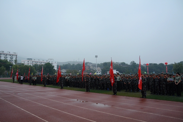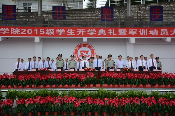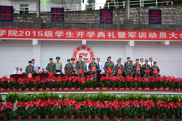 在校歌《正道直行做栋梁》激昂的歌声中,大会宣告结束。2015级全体新生在教官的指导下开始了为期两周的大学军训生活。