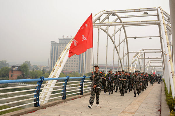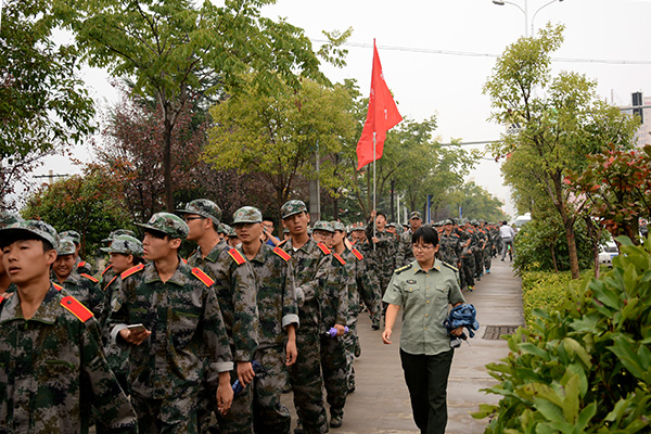 9月17日,英国365上市公司2015级新生在军训团和全体教官的带领下,顺利完成了作为军训重要科目的行军拉练活动。