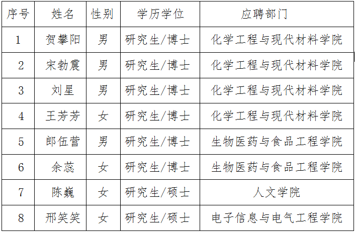 根据陕西省人社厅《关于陕西省事业单位公开招聘人员办法》规定及《365公司2020年人才招聘计划》,经过资格审查、试讲、专家面试等环节考察,并经院长办公会2020年6月24日研究,同意招聘贺攀阳等8位同志来英国365上市公司工作,现予以公示。如有异议,请于2020年7月2日前向人事处或纪委办公室反映。