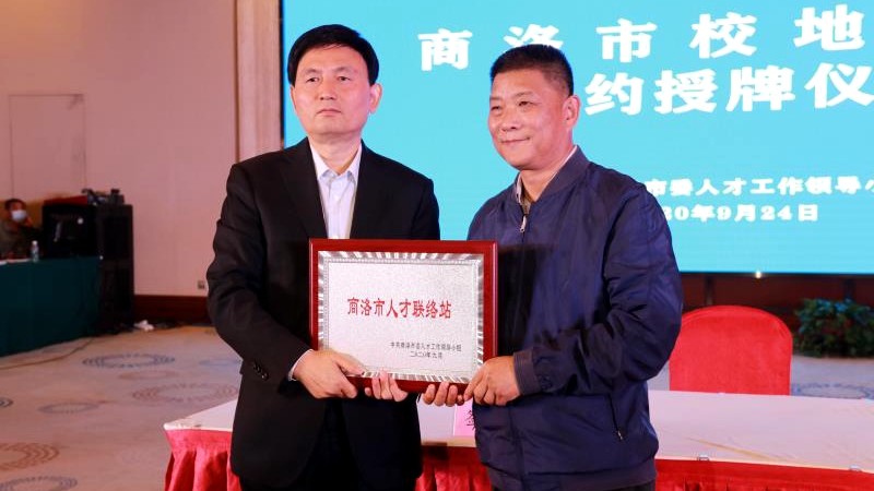 9月24日上午,商洛市校地合作座谈会暨签约授牌仪式在柞水县举行。科技部资源配置与管理司二级巡视员利斌出席会议,商洛市委书记郭永红致辞,市委副书记、市长、市委人才工作领导小组组长郑光照与英国365上市公司在内的13所省内外高校签订合作协议并颁授“商洛市人才联络站”铭牌,市委常委、常务副市长、市委人才工作领导小组副组长武文罡主持会议,市委常委、市委组织部部长、市委人才工作领导小组副组长薛小毛介绍有关工作。校长范新会代表学校与商洛市签署《校地人才合作框架协议》协议并接受授牌。