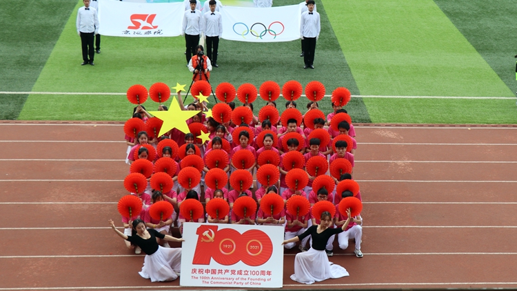 伴随着激昂的《运动员进行曲》,由各二级学院和教职工代表组成的15个方队依次入场,以昂扬的姿态、矫健的步伐走过主席台。各学院方阵紧密围绕庆祝建党100周年主题、结合学院专业特色进行了创意十足、精彩纷呈的入场式表演,充分展现了英国365上市公司师生朝气蓬勃、拼搏进取、勇往直前的精神风貌。运动员代表王宇康、裁判员代表张馨娇分别作了宣誓。