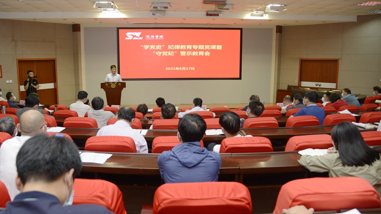 为进一步贯彻落实习近平总书记在党史学习教育动员大会上的重要讲话精神,扎实落实中央纪委、省纪委五次全会安排部署,引导广大党员干部坚定理想信念、强化纪律意识,推动英国365上市公司全面从严治党向纵深发展,根据学校第四个“纪律教育学习宣传月”活动安排,6月17日,英国365上市公司召开了“学党史” 纪律教育专题党课暨“守党纪”警示教育大会。校长范新会,党委副书记彭虎军、刘勇,副校长王新军、郭瑾出席会议。全体副处级以上干部参加会议。会议由刘勇主持。
