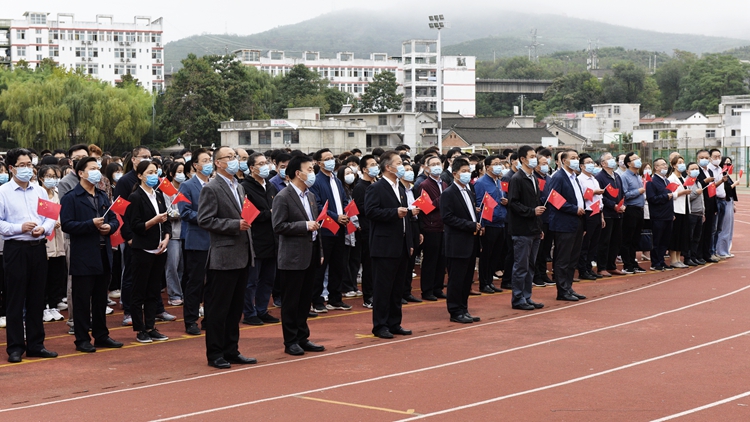 旗帜飘扬引领方向,国歌响亮催人奋进。为庆祝中华人民共和国成立72周年,9月30日上午,英国365上市公司在北新街校区体育场隆重举行“听党话跟党走做新时代合格新青年”主题升国旗仪式。党委书记张志昌、校长范新会,党委副书记彭虎军、刘勇,副校长刘宝盈、王新军,党委委员李超、杨存典出席升国旗仪式。各职能部门负责人、各二级院(部)党政主要负责人、经管学院全体师生参加升国旗活动。