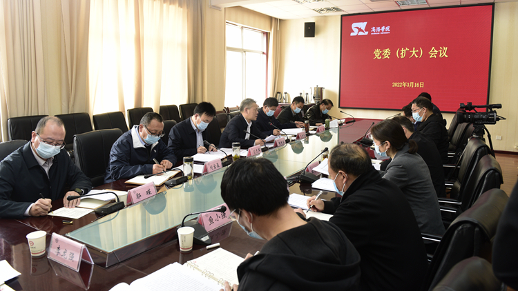 会议采取线上线下相结合的方式召开,全体校领导、党委委员和党委理论学习中心组成员在现场参会,各职能部门、各二级院(部)党政主要负责人通过在线参加会议。