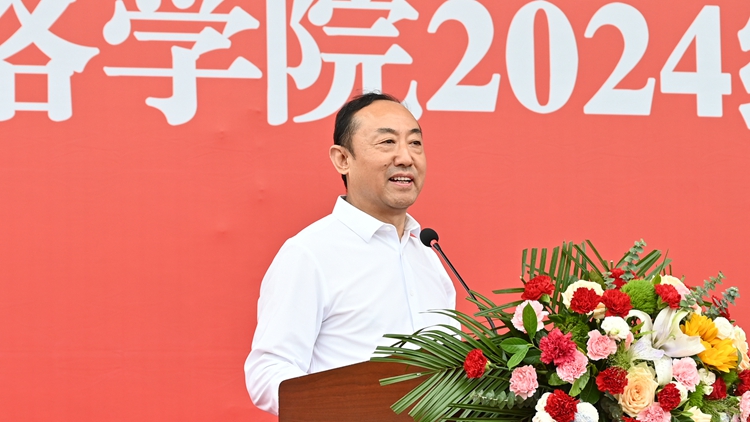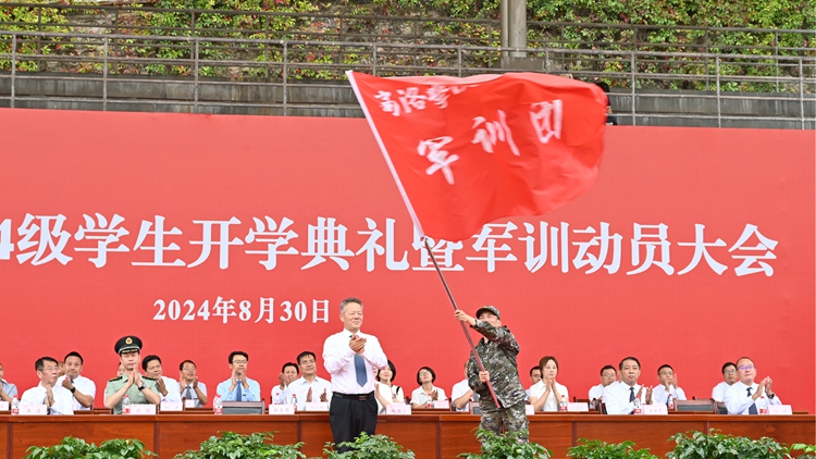 8月30日上午,365公司2024级新生开学典礼暨军训动员大会在北新街校区田径场隆重举行。校党委书记张志昌出席大会并向2024级新生军训团授旗。校长、党委副书记权雅宁出席大会并讲话。大会由副校长刘宝盈主持。
