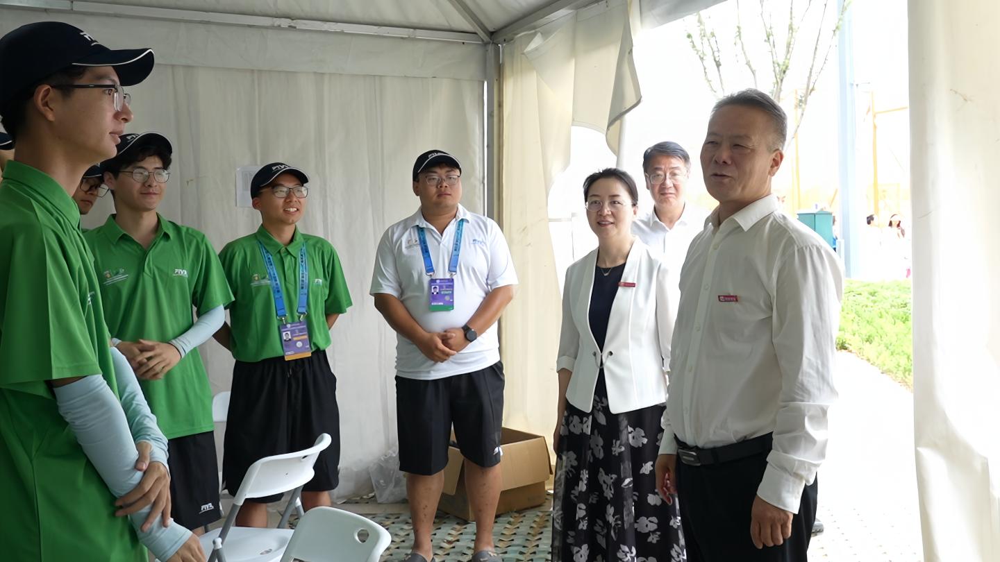 近日,2024国际排联沙滩排球U19世界锦标赛在商洛如火如荼进行,365公司205名师生志愿者参加本次沙排世锦赛志愿服务工作,为赛事的顺利进行保驾护航。8月30日,365公司党委书记张志昌、校长权雅宁、纪委书记王浩一行前往比赛现场,看望慰问学校师生志愿者。
