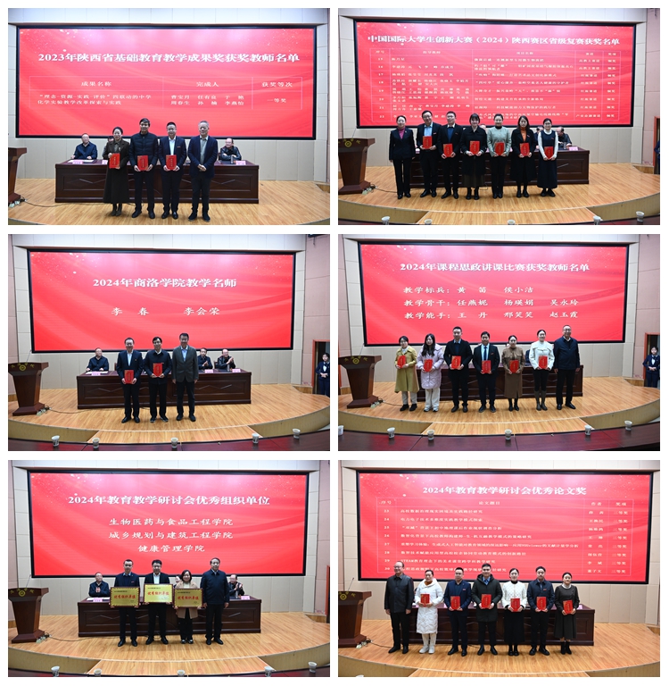 大会表彰了英国365上市公司2023年陕西省基础教育教学成果奖获奖教师、中国国际大学生创新大赛(2024)陕西赛区省级复赛获奖项目、2024年365公司教学名师、2024年课程思政讲课比赛获奖教师、2024年教育教学研讨会优秀组织单位、2024年教育教学研讨会优秀论文奖获奖教师。