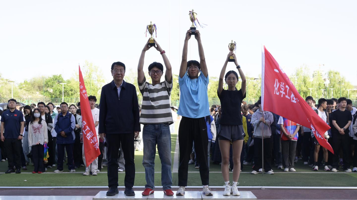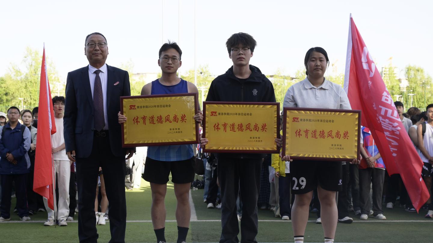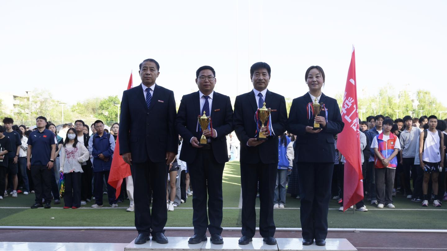 在热烈的掌声中,刘宝盈为获得体育道德风尚奖的学院颁奖,王新军、王浩分别为教工组团体总分、学生组团体总分前三名的学院颁奖,郭瑾、程敏分别为男子团体总分、女子团体总分前三名的学院颁奖。