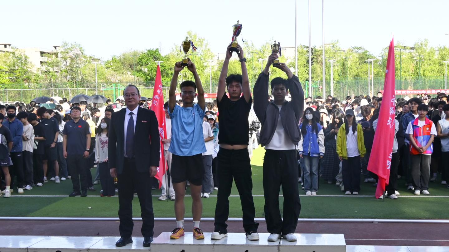 王新军在致辞中代表学校向取得优异成绩的运动员和获奖集体表示热烈祝贺,向全体参赛选手、裁判员、工作人员和志愿者表示感谢。他指出,全体运动员在本届运动会中以昂扬奋进之姿诠释了奥林匹克精神,各部门协同联动,全体师生热情助威,共同营造了“文明参赛、公平竞争、团结友爱、热烈有序”的浓厚氛围。他希望全体师生贯彻落实“五育并举”理念,坚守“健康第一”宗旨,让运动成为生活常态;全体运动员将赛场上不服输、不放弃的劲头,转化为攻克学业难题、追求人生目标的强大动力;各部门、各学院以本次运动会为契机,凝心聚力、奋勇争先,以优异成绩为学校建校50周年增光添彩、聚势赋能。