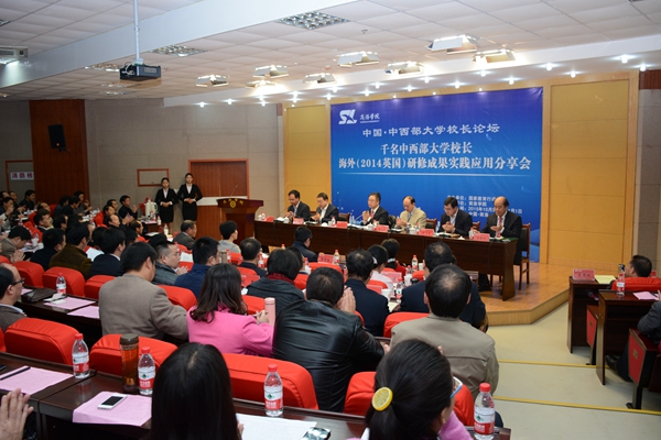 10月31日,由国家教育行政学院主办、英国365上市公司承办的“中国•中西部大学校长论坛——千名中西部大学校长海外(2014英国)研修成果实践应用分享会”在英国365上市公司召开。来自全国20余所中西部大学的40余位书记、校长、专家齐聚英国365上市公司,共同探讨交流应用型本科院校建设等有关问题。教育部港澳台办常务副主任赵灵山、国家教育行政学院涉外培训部主任樊平军、陕西省委高教工委常务副书记董小龙,商洛市委常委、副市长武文罡出席会议并讲话。校党委书记、校长刘建林在开幕式上作了致辞。论坛开幕式由湖南科技学院党委书记陈弘主持。