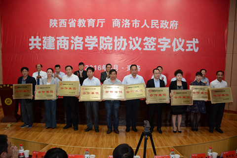 出席签字仪式的陕西省委高教工委、省教育厅,商洛市委、市政府及学校领导,为商州区中学、商洛市群众艺术馆、陕西森弗天然制品有限公司、陕西天士力植物药业有限公司、商洛市林强电线电缆有限公司、商洛供电局丹凤分局、洛南宏泰金银花专业合作社、陕西康惠制药股份有限公司、镇安县回龙镇和坪村等校地校企合作单位代表授牌。程敏博士代表全校教师作了发言。