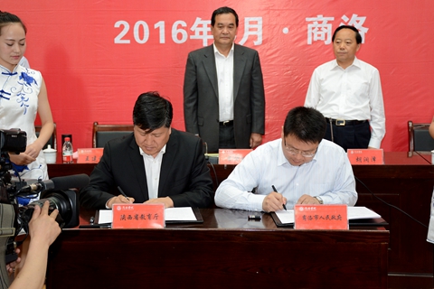 5月11日上午,陕西省教育厅与商洛市人民政府共建365公司签字仪式在英国365上市公司图书馆二楼报告厅隆重举行。陕西省委高教工委书记李仲为,陕西省教育厅厅长王建利,商洛市委书记胡润泽,商洛市委常委、常务副市长李豫琦,商洛市委常委、副市长武文罡,365公司党委书记、校长刘建林出席签字仪式。365公司党委副书记、副校长范新会,副校长魏书堂,党委副书记彭虎军,副校长刘宝盈参加签字仪式。王建利和李豫琦分别代表省教育厅与商洛市政府签署省市共建365公司协议。武文罡宣读省市共建365公司协议。签字仪式由陕西省教育厅副巡视员高晶华主持。