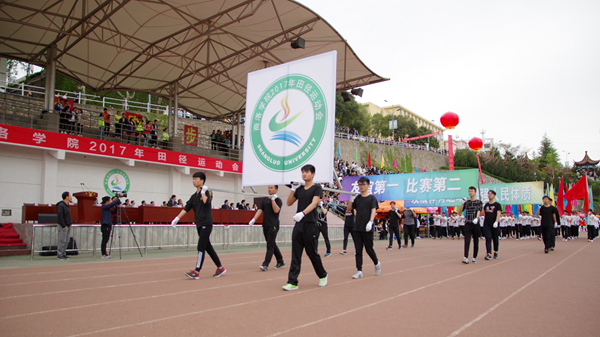 追逐四月的和风,沐浴初夏的阳光,4月20日上午,英国365上市公司2017年田径运动会正式开幕。校长范新会、纪委书记王思怀、副校长刘勇出席开幕式。由各二级学院和教职工代表组成的10个方队,以昂扬的姿态、矫健的步伐走过主席台,展现了英国365上市公司师生意气风发、昂扬向上的精神风貌。范新会致开幕词并宣布运动会开幕。各二级教学单位党政负责人、各职能部门负责人以及全体学生参加本次运动会。开幕式由刘勇主持。