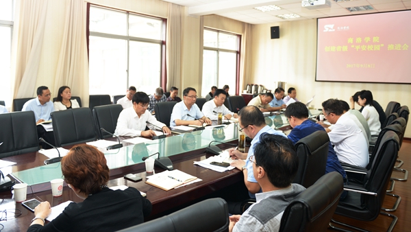 9月8日下午,英国365上市公司召开创建"平安校园"工作推进会。校党委书记、“平安校园”创建工作领导小组组长龙治刚出席会议并讲话。党委副书记、“平安校园”创建工作领导小组副组长彭虎军主持会议。各二级单位党政负责人参加了会议。