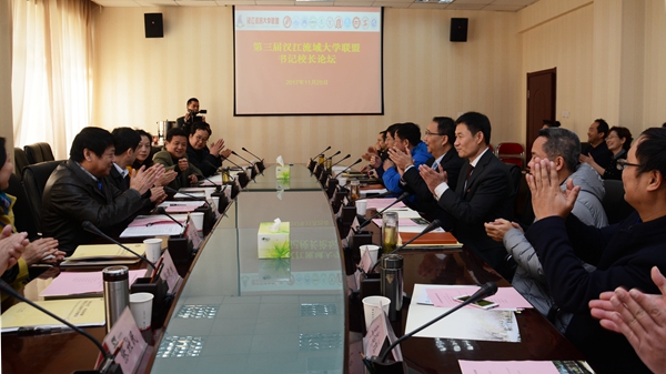 悠悠丹江水,拳拳友谊情。11月25日,由湖北省社会科学院、陕西省社会科学院、湖北文理学院、南阳师范学院和365公司共同主办的第三届汉江流域大学联盟书记校长论坛暨第四届汉江论坛在英国365上市公司图书馆二楼报告厅隆重举行,来自湖北省、河南省、重庆市、陕西省的领导、专家、学者共聚一堂,谋划汉江流域大学联盟和汉江生态经济带发展大计。商洛市委书记、市人大常委会主任陈俊,陕西省委高教工委委员、陕西省教育厅副厅长(正厅级)、陕西省高教局副局长刘建林,湖北省社科院院长宋亚平,陕西省社科院常务副院长白宽犁,联盟11所高校的书记、校长,英国365上市公司领导龙治刚、王思怀、魏书堂、彭虎军、刘宝盈,鄂豫陕三省有关政府职能部门负责人、社科院的领导和专家学者,及英国365上市公司师生代表共计300余人参加论坛。论坛开幕式由365公司副校长刘勇主持。