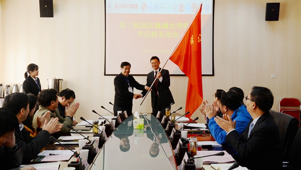 在书记校长论坛上,英国365上市公司作为2018年汉江流域联盟轮值理事长单位接受2017年汉江流域联盟轮值理事长单位、南阳师范学院党委书记黄荣杰授旗,副校长刘勇接旗;表决通过了湖北汽车工业学院作为2019年轮值理事长单位并成立新的秘书处,负责盟内日常工作的开展。联盟高校的书记校长以“深化合作,开拓创新,促进汉江流域大学建设”为主题,围绕“双一流”建设与创新发展、应用型人才培养与创新发展、师资队伍建设与创新发展、高校治理体系法治化与创新发展、国际合作交流与创新发展、大学文化建设与创新发展、高校党的建设与创新发展等议题分别作了主题发言。他们共同表示,联盟高校要以党的十九大精神为指导,立足国家战略和区域规划,瞄准区域经济社会发展需要,加强相互合作与发展,创新协同发展体制机制,实现优势互补、整体提升,开创互利合作共赢新局面。