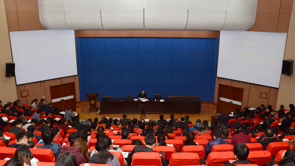 11月27日,省专家学者宣讲团党的十九大精神示范宣讲报告会在英国365上市公司图书馆二楼报告厅举行。陕西省社科联党组书记、常务副主席李颖科教授为师生作了题为《坚定文化自信,努力推动社会主义文化繁荣兴盛》的专题报告。校领导龙治刚、王思怀、魏书堂、彭虎军、刘宝盈、刘勇出席报告会,全校副科级以上领导干部、副高级职称以上教师、青马班学员等师生近500人聆听了报告。报告会由党委书记龙治刚主持。
