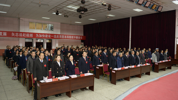 龙治刚代表中国共产党365公司第一届委员会向大会作了题为《聚焦内涵发展 矢志追赶超越 为加快建设一流应用型本科院校不懈奋斗》的工作报告。大会由范新会主持。