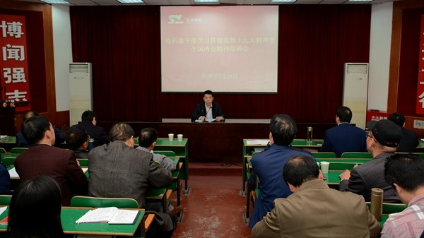 校党委书记龙治刚、校长范新会分别介绍了十三届全国人大一次会议、全国政协十三届一次会议概况,传达了两会精神,带领大家重点学习了习近平总书记在两会期间的重要讲话精神。党委副书记彭虎军就培训目的、内容、方式及相关要求进行了安排部署。