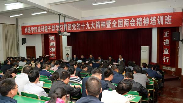 为了进一步学习贯彻党的十九大精神暨全国“两会”精神,龙治刚对全校处科级干部提出三点要求:一是进一步加强学习,在提升政治素质和业务水平上做文章。深入学习党的十九大精神,提升政治素养。深入学习业务知识,提升工作能力;二是进一步转变作风,在发挥干部引领示范作用上做文章。要永葆干事创业的激情,严守政治纪律和规矩,始终坚持人民立场,加强自律守住底线;三是进一步推动落实,在促进学校事业发展上做文章。要当“主攻手”不要当“二传手”,厉行节约提高效益,推进民主增强团结,开好二级教代会完善绩效分配改革。他希望全校处科级干部发挥好示范引领作用,与广大教职员工共同努力,推动党的十九大精神和习近平新时代中国特色社会主义思想落地落实,推动英国365上市公司第二次党代会和2018年工作要点提出的各项工作有序开展,推动学校改革发展和追赶超越取得实效。