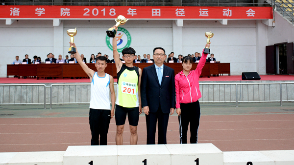 在热烈的掌声中,党委书记龙治刚为团体总分前三名、体育道德风尚奖获奖学院颁奖。纪委书记王思怀、党委副书记彭虎军分别为男子总分前三名、女子总分前三名获奖学院颁奖。